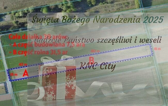 Część budowlana 7,5 ara , część rolna 31,5 ara